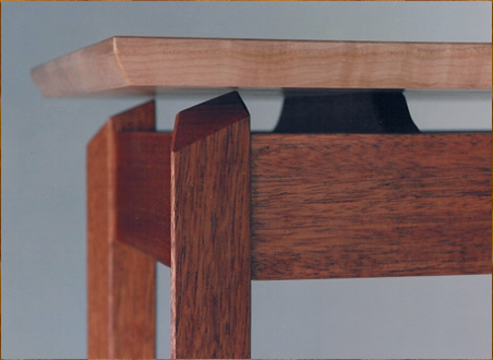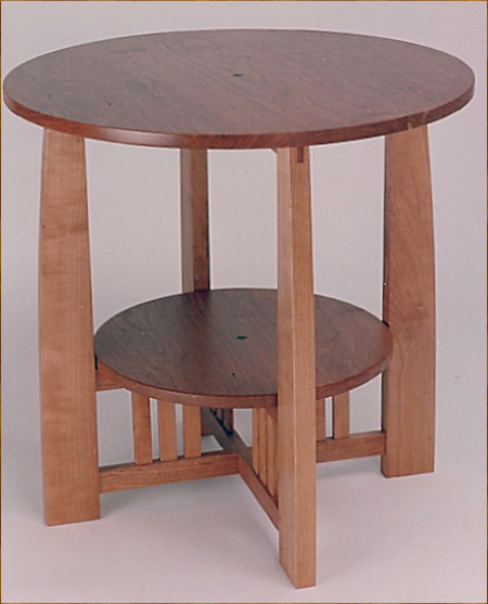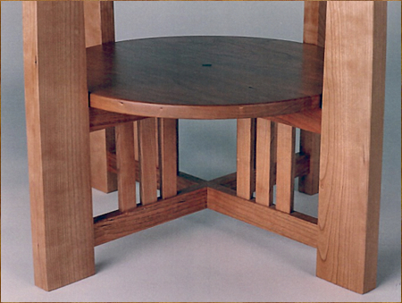 At the turn of the century, Harvey Ellis went to work for Gustav Stickley. Ellis is credited with introducing curves and a lighter feel to Stickley’s rectilinear designs. This cherry table is derived from an oval library table Ellis designed for Stickley in 1902.