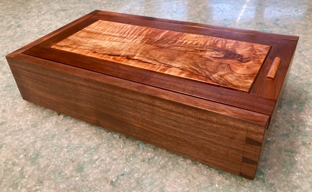 When my close friend’s daughter got married recently, I made this small keepsake box as a present. She’s a wonderful young person, whom I have know since before she was born . . . over thirty years ago, I canoed in the Boundary Waters with her parents while her mom was pregnant.