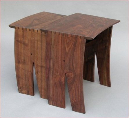 The smaller of the two tables is 20″ high, and the larger version nests on top. It’s an easy design to re-proportion as needed. The legs suggest motion, and I like the combination of the dovetail joinery and the flowing curves of the top and the legs.